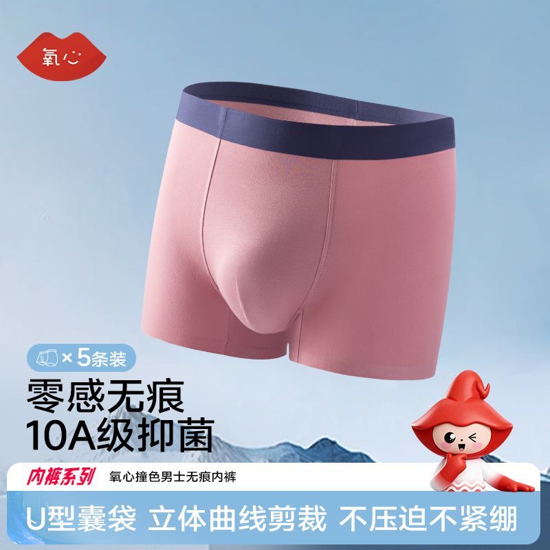 【5条装】氧心2026新款柔软云感内裤男无痕舒适抑菌中腰四角裤